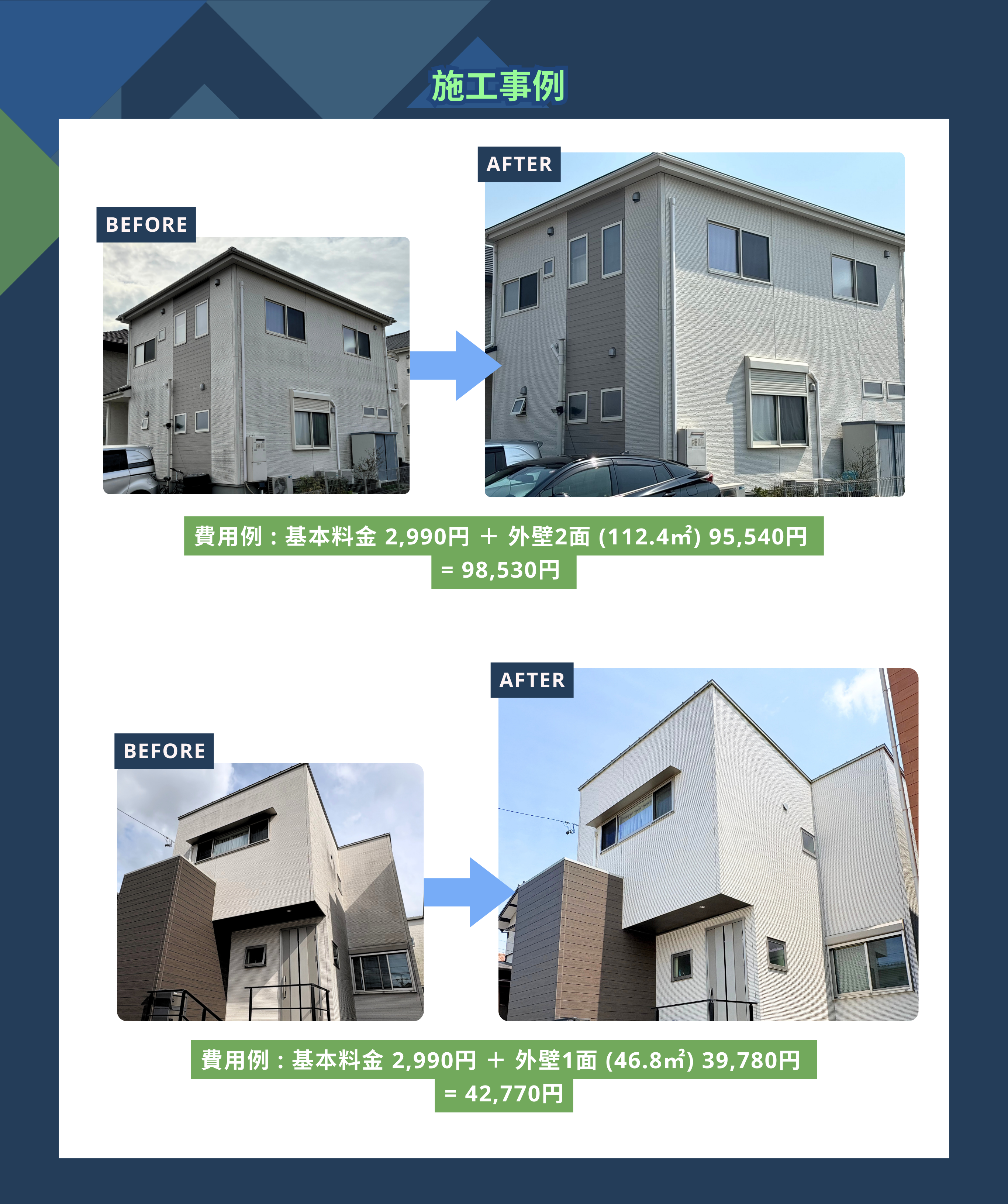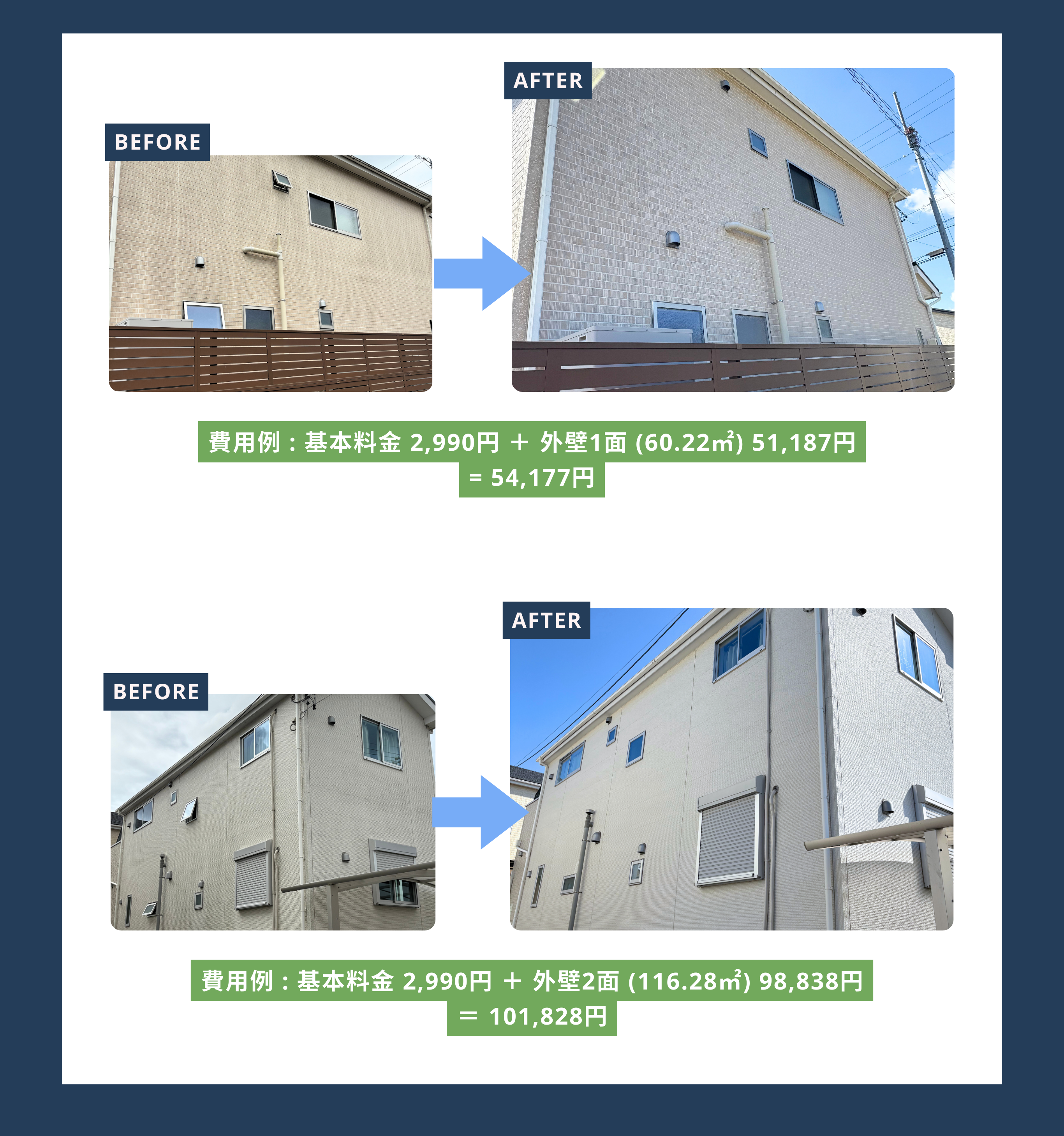 Prime Clean Proの外壁洗浄施工事例をご紹介。愛知・三重・滋賀の住宅・建物でのビフォーアフターを掲載。仕上がり・スピード・満足度をご確認いただけます。